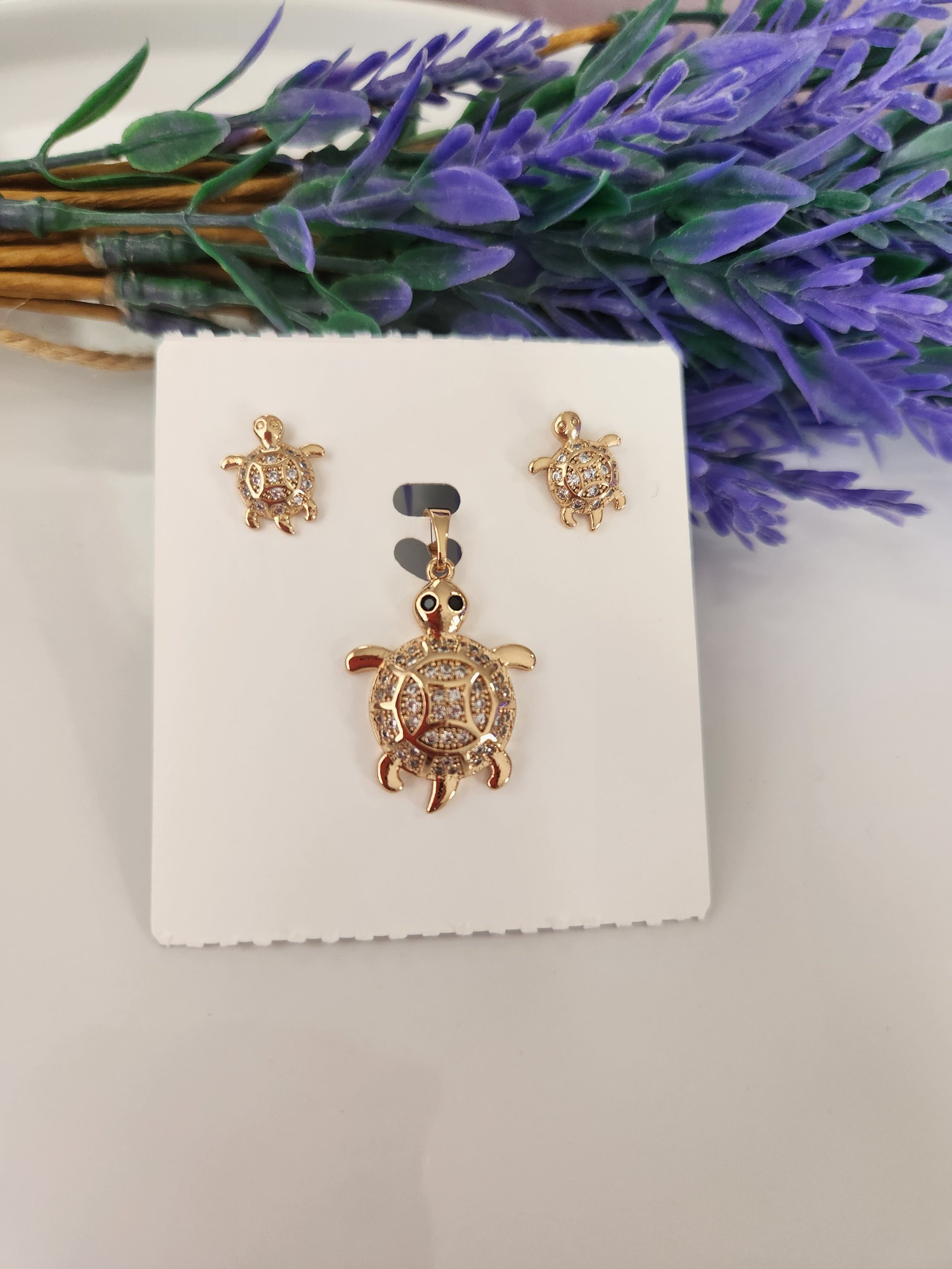 -Conjunto de dije y aretes oro laminado color 18k